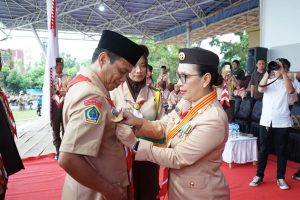 Wabup Vanda Sarundajang dalam sambutannya menegaskan bahwa Gerakan Pramuka memiliki peran strategis dalam membentuk generasi muda yang tangguh, berkarakter, disiplin, serta memiliki kecintaan yang kuat terhadap tanah air.