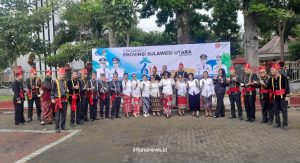 Keunikan acara semakin terasa dengan kehadiran peserta upacara yang mengenakan pakaian adat khas Minahasa. Meski harus berhujan-hujanan, seluruh peserta tetap antusias mengikuti rangkaian kegiatan.