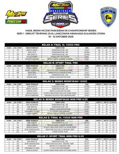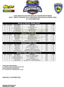 Berikut hasil hasil resmi McJoe Pangeran 05 Championship Series 2025 di Sirkut Tempang Dua Langowan Utara: