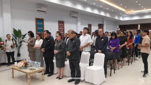 Ibadah yang digelar di Ruang Sidang Kantor Bupati Minahasa ini dihadiri oleh Bupati Robby Dondokambey SSi MAP, didampingi Ketua TP PKK Minahasa Martina Watok Dondokambey Lengkong, Wakil Bupati Vanda Sarundajang SS, Sekretaris Daerah Dr. Lynda D. Watania MM MSi, serta seluruh jajaran pejabat, mulai dari Asisten, Staf Ahli, Kepala Badan, Dinas, hingga Camat se-Kabupaten Minahasa.