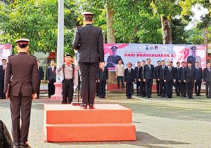 Upacara Hari Bhayangkara ke-79 berlangsung lancar dan penuh makna sebagai bentuk penghormatan atas pengabdian institusi Polri kepada bangsa dan negara yang disaksikan oleh unsur Forkopimda dan seluruh keluarga besar Polres Minahasa.(HT)