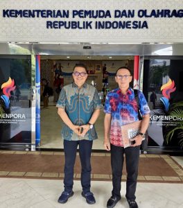 RadiusNews.id, Jakarta- Kepala Dinas Kepemudaan dan Olahraga Kabupaten Minahasa Agustivo Tumundo, SE, MSi didampingi Sekretaris Dinas Rouldy Mewoh, S.Sos melakukan Kunjungan Kerja di Kementerian Pemuda dan Olahraga RI (Kemenpora) pada Rabu, 4 Agustus 2026.
