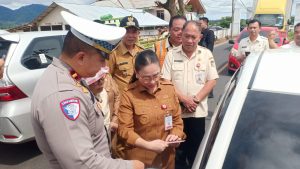 RadiusNews.id, Minahasa- Wakil Bupati Minahasa, Vanda Sarundajang, SS, didampingi Kepala Badan Pendapatan Daerah (Bapenda) Minahasa, Djefry Tangkulung, SH, MAP, memantau langsung pelaksanaan operasi gabungan razia pajak kendaraan bermotor di Jalan Raya Langowan, Selasa (15/7/25).