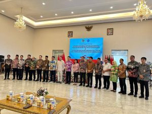 RadiusNews.id, Manado- Bupati Minahasa, Robby Dondokambey, S.Si., MAP, menghadiri Kunjungan Kerja Menteri Agraria dan Tata Ruang/Badan Pertanahan Nasional (ATR/BPN) Republik Indonesia, Nusron Wahid, S.S., M.Si., yang dilaksanakan di Wisma Negara Bumi Beringin, Manado, Kamis (17/7/2025).