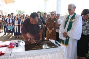 RadiusNews.id, Minahasa- Bupati Minahasa, Bapak Pnt. Robby Dondokambey, S.Si, MAP, bersama Ketua TP-PKK Kabupaten Minahasa, Ibu Pnt. Martina Watok Dondokambey-Lengkong, SE, menghadiri Ibadah Syukur Hari Ulang Tahun ke-32 GMIM Salem Katingolan yang dirangkaikan dengan peresmian Pastori 1.