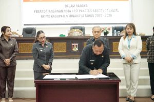 “Hari ini kita mengikuti rapat paripurna dalam rangka penandatanganan nota kesepakatan rancangan awal RPJMD 2025–2029. Terima kasih atas kebersamaan dan komitmen semua pihak dalam membangun Minahasa yang lebih baik,” ujar Longkutoy.